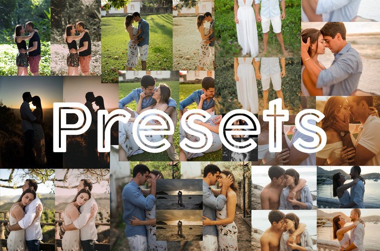 São tons variados, modernos e versáteis. Perfeitos para ensaios ao ar livre, em estúdio, casamentos, aniversários, família e muito mais.